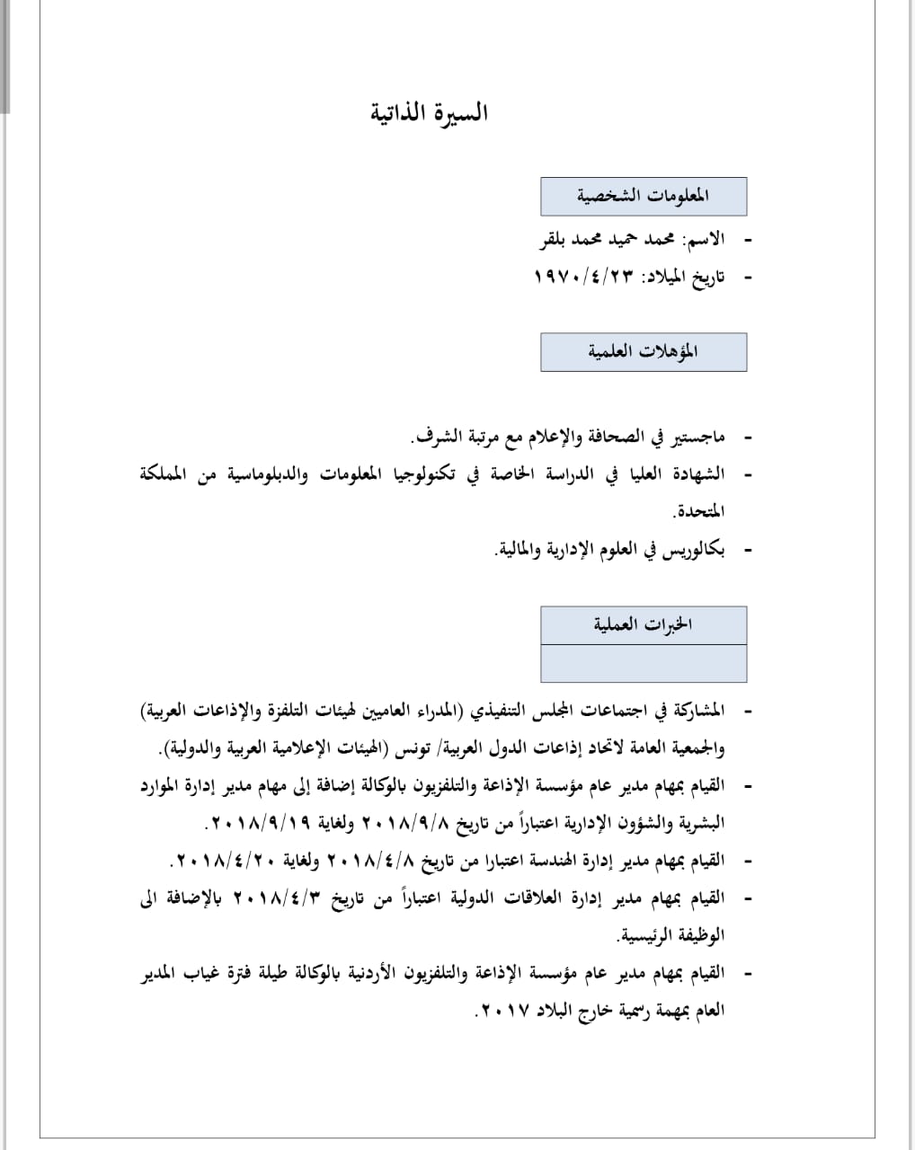 السيرة الذاتية